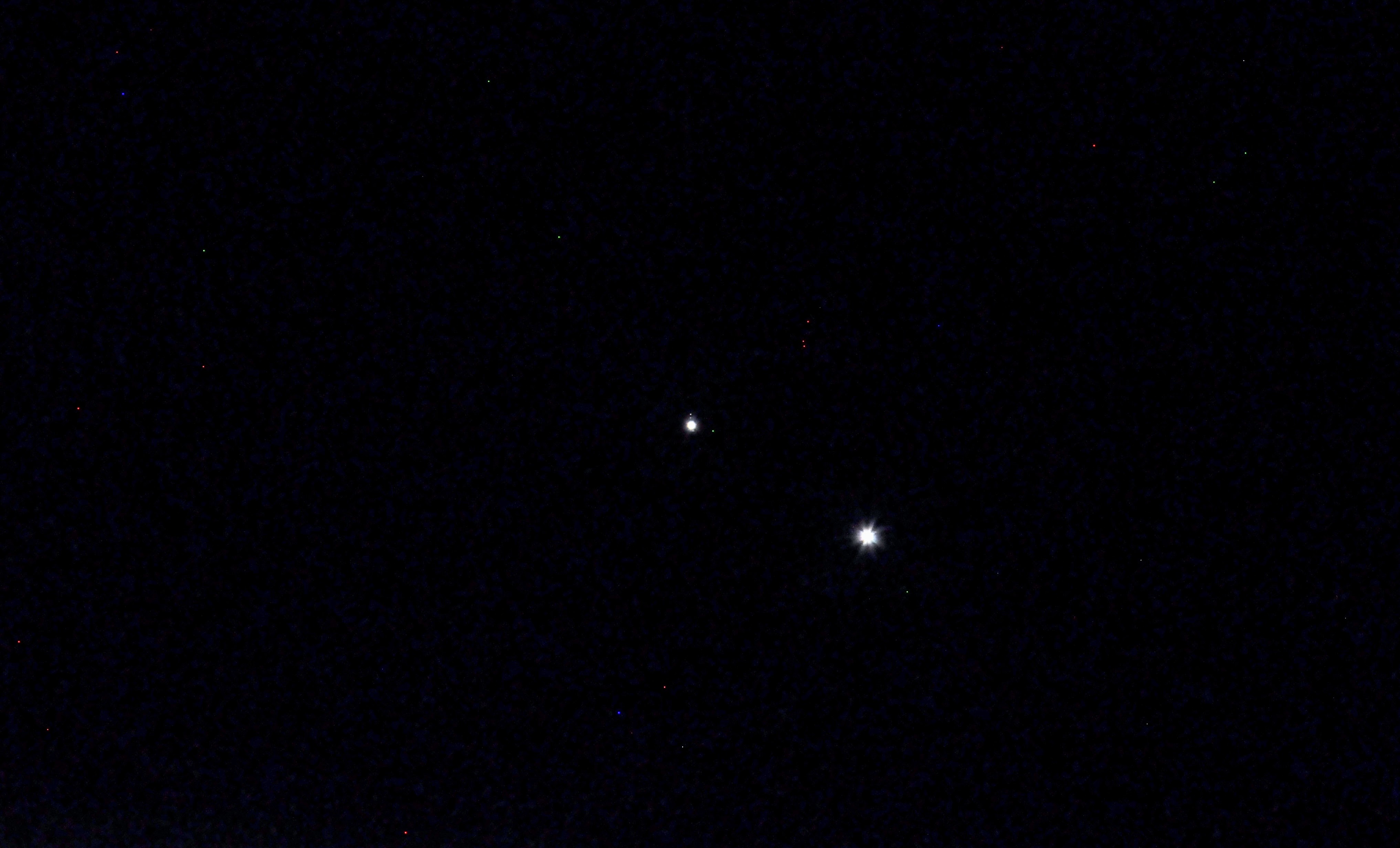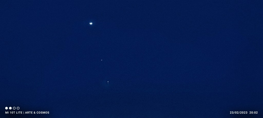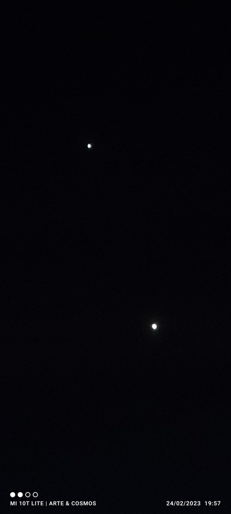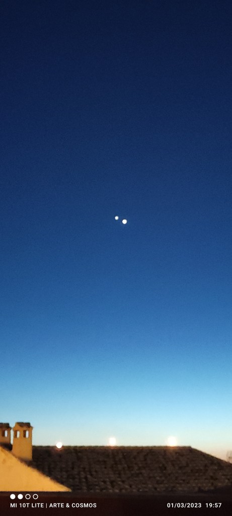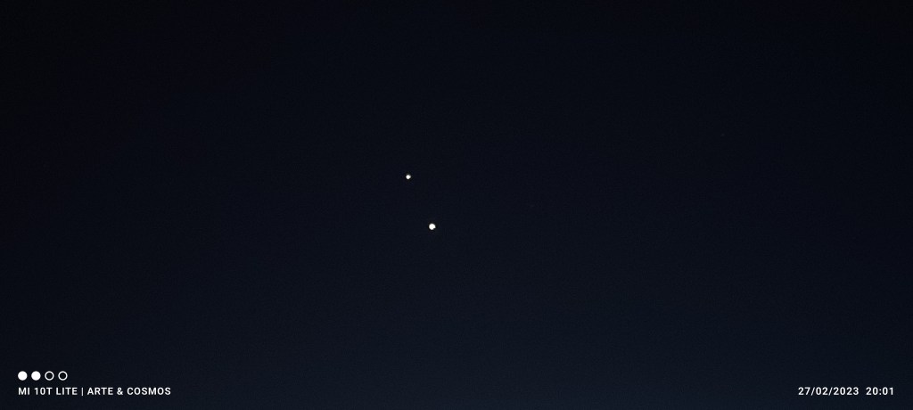 Ambos planetas se irán aproximando lentamente en el cielo en la conjunción de este año 2023 y desde la segunda quincena de febrero hasta principios de marzo brillarán cercanos, por lo tanto un agradable espectáculo de observar cuando lleguen a su máxima aproximación el día dos de marzo, cuando estarán a menos de 30′ de separación es decir, menos que el diámetro angular de la Luna a simple vista.