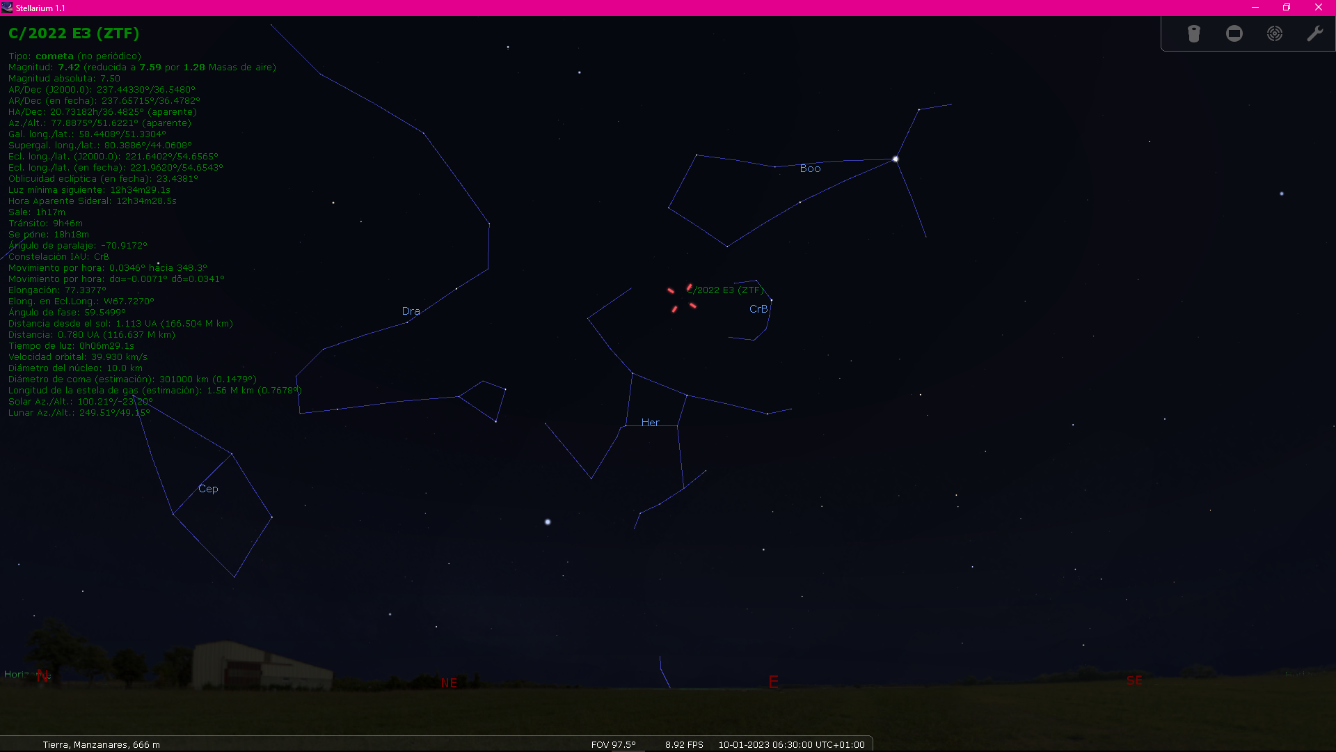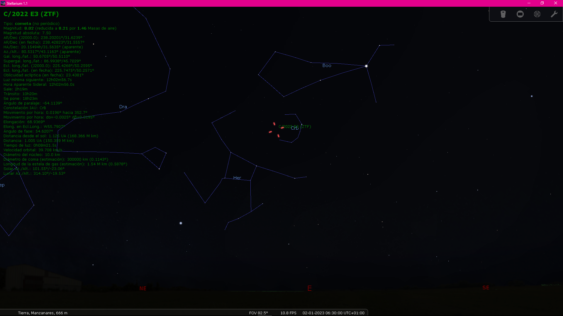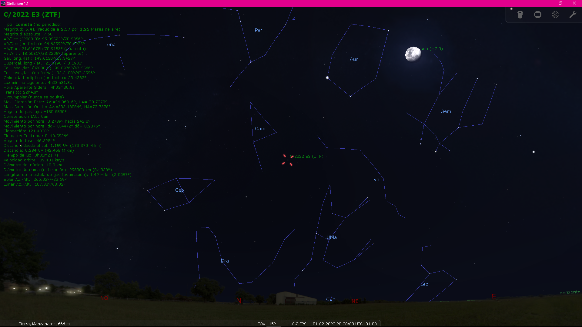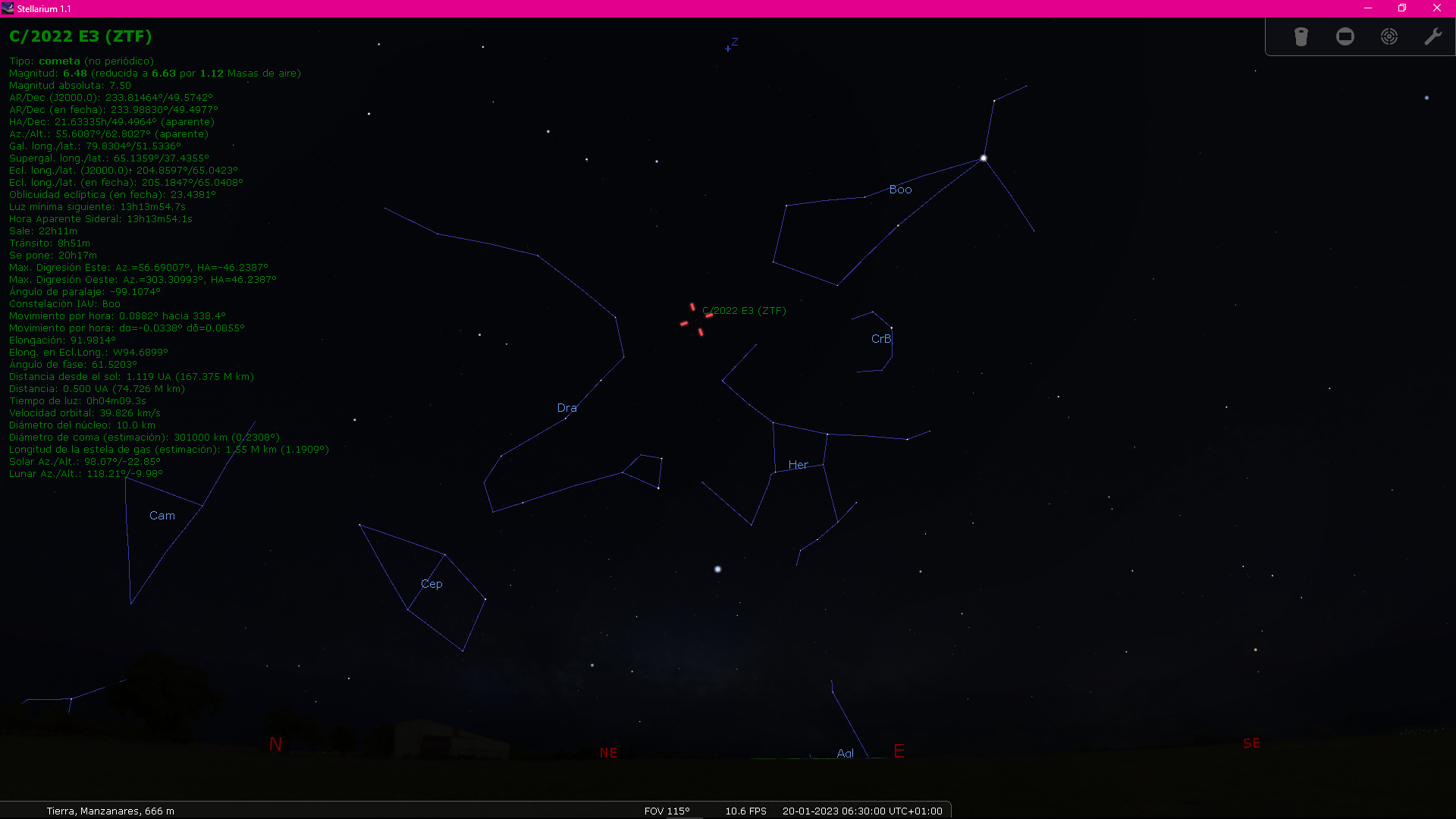 A continuación unas capturas de pantalla con la situación del cometa en distintas fechas, hasta el día 1 de febrero que en teoría se verá mas brillante, aunque por esas fechas el resplandor de la Luna pueda influir en su visión sin utilizar unos binoculares.