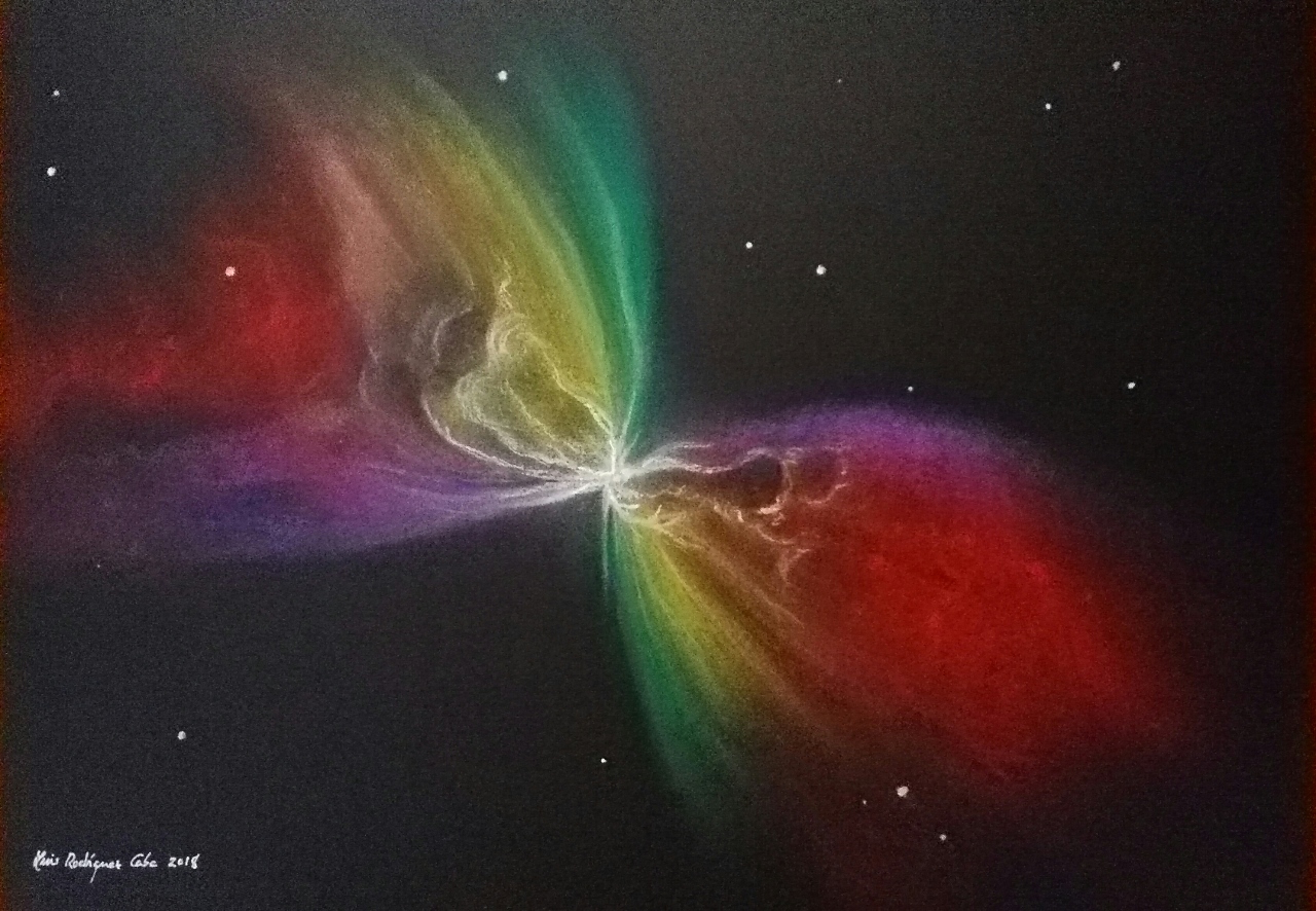Nebulosa planetaria Boomerang dibujada con tizas pastel