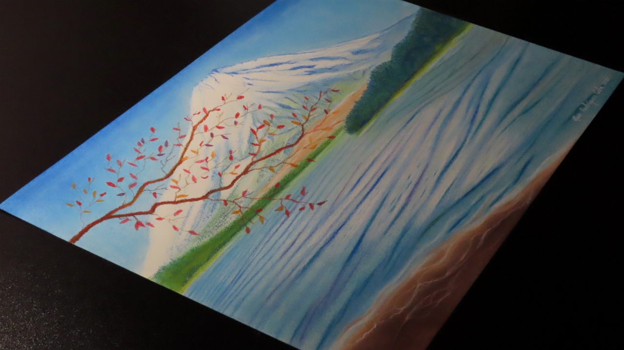Saludos a tod@s; en esta ocasión, mi obra artística es un paisaje con un poderoso volcán en un entorno apacible, donde parece respirarse paz y tranquilidad 🙏