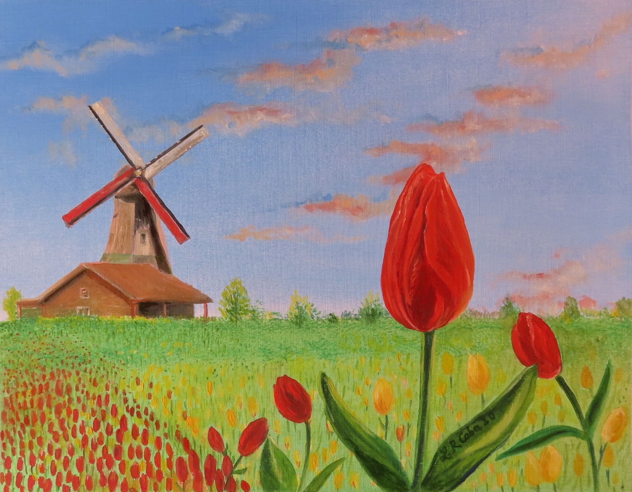 Pintura realizada con óleos Rembrandt sobre papel especial Arteza de 27.9 x 35.5 cm y 400 gr/m2