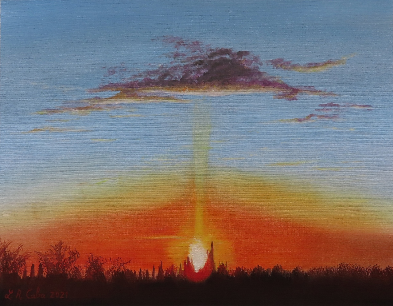 Me encanta ver el sol al ponerse en el ocaso del atardecer y en su salida al amanecer, todos son especiales y bellos, en alguna ocasión se puede observar un fenómeno poco frecuente, fenómeno óptico poco habitual de halo atmosférico, creado por el reflejo de los rayos del sol en pequeños cristales de hielo que se encuentran en el aire y que brillan formando un pilar de luz, que puede ser hacia arriba o incluso hacia abajo.