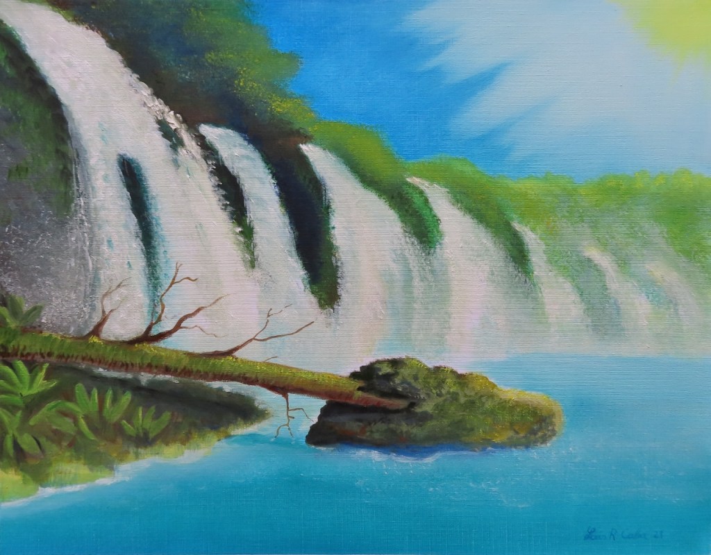 En mi nuevo trabajo de arte al óleo el tema principal es la naturaleza, un paisaje sencillo e idílico con el agua como símbolo dador de vida y que nos envuelve en un sentimiento de plenitud y tranquilidad.