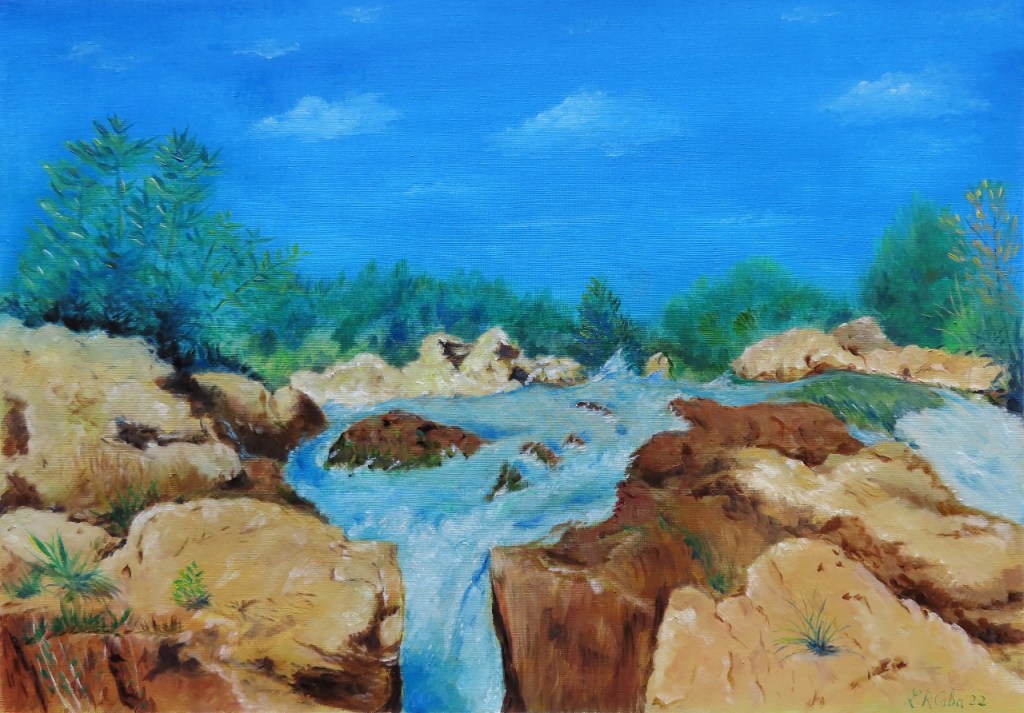 Un pequeño arroyo de agua cristalina, rápido, serpenteando y acariciando las rocas, es el motivo de mi nuevo trabajo de arte, espero os guste