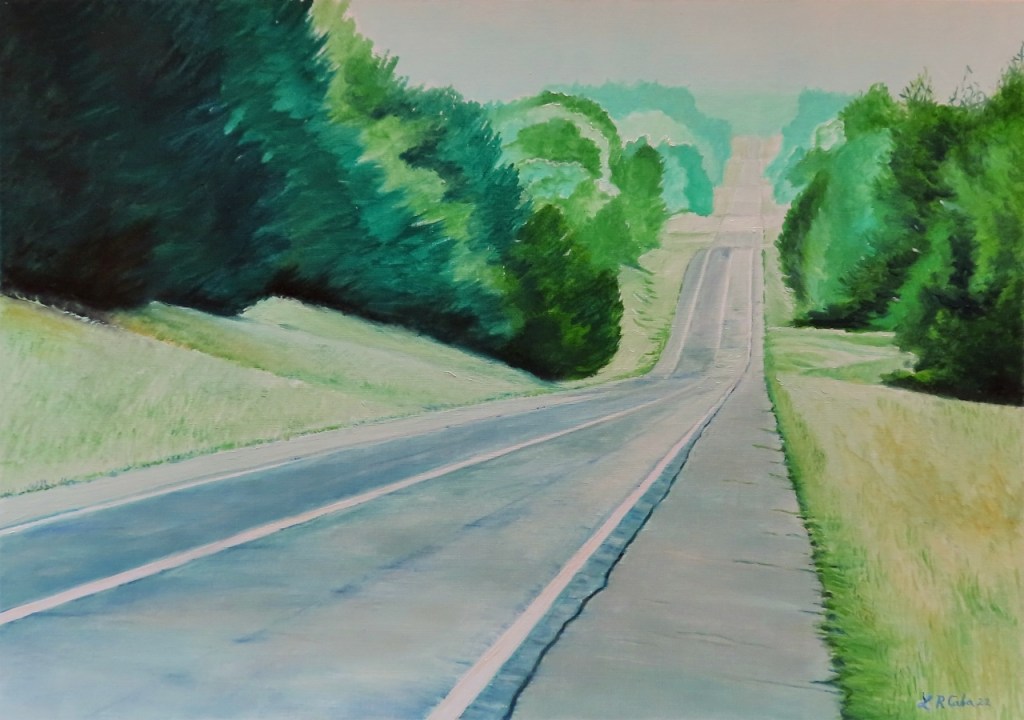 Una solitaria carretera es el motivo central de mi trabajo de arte al óleo