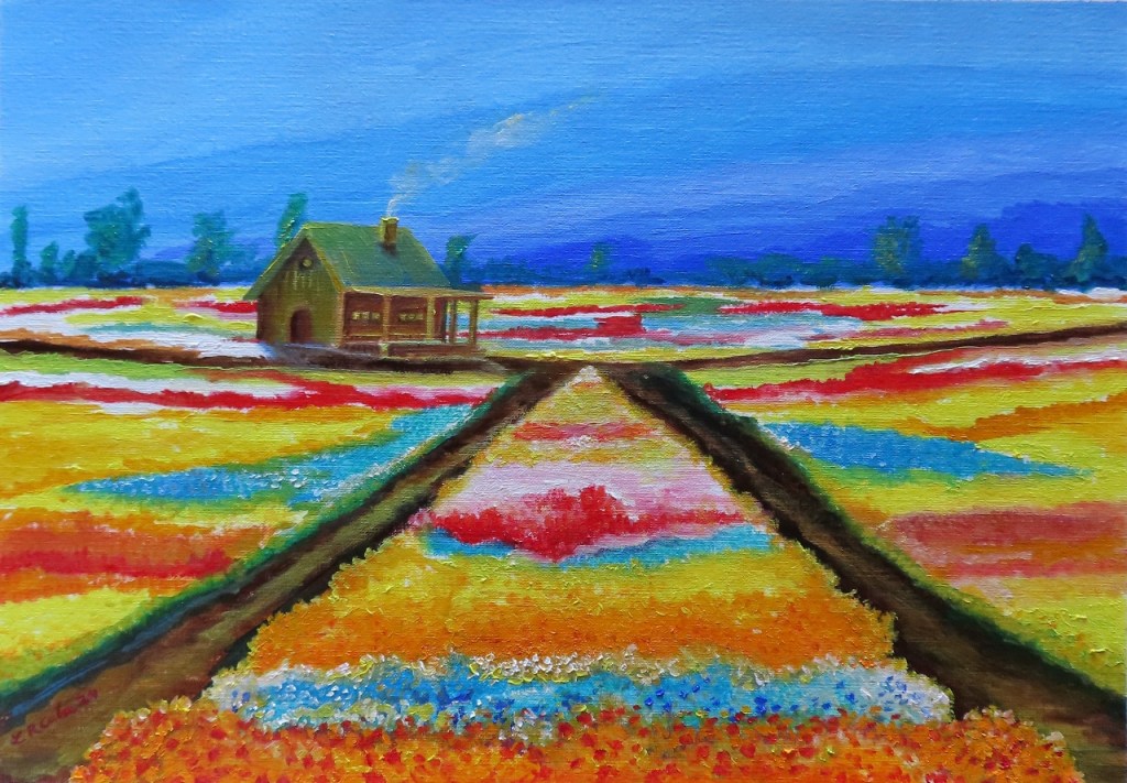Es para mí un placer compartir mi nuevo trabajo de arte, en esta ocasión pintado al óleo, con el título de «Campo de flores», un paisaje de ensueño pleno de colorido para disfrutar.