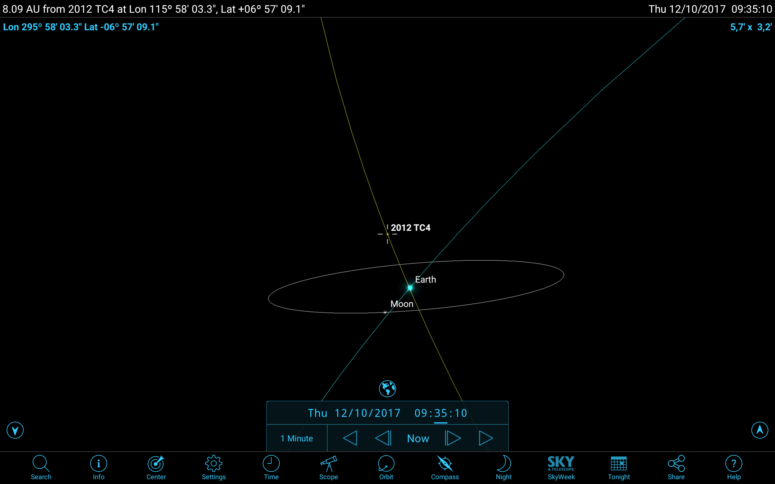 Arriba podemos ver su posición el día del máximo acercamiento a la Tierra.