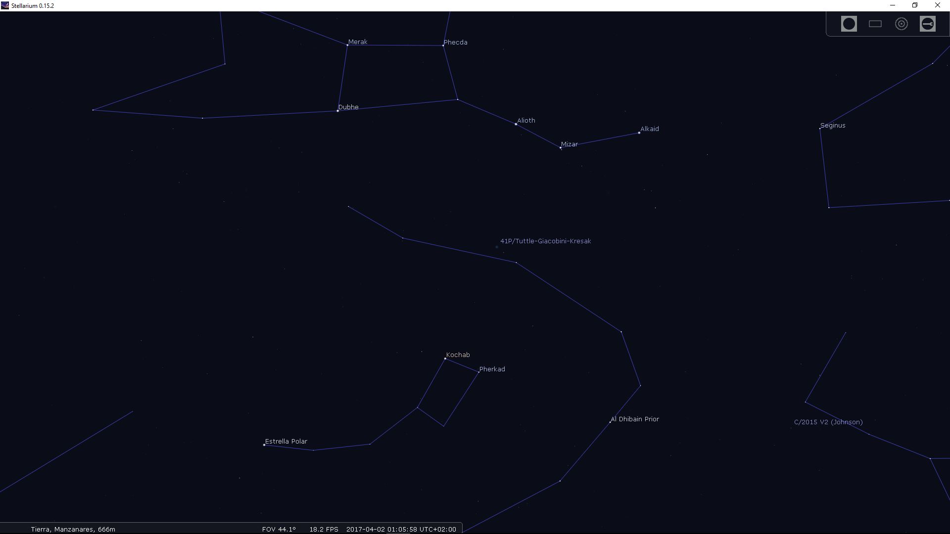 El día de la observación 2-Abril-2017 se veía así el cielo