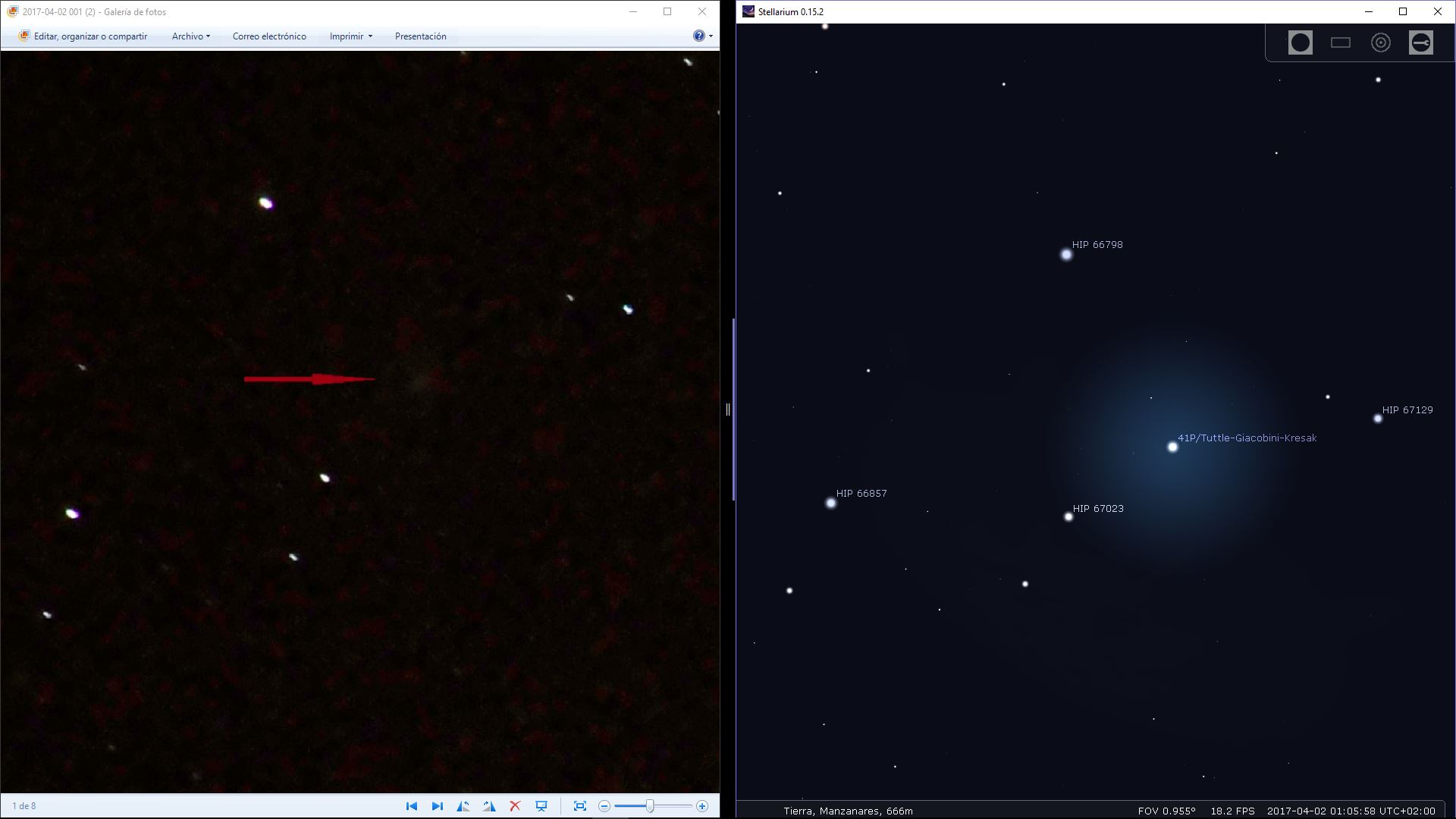 Y el resultado de la fotografía comparándola con la captura del programa de astronomía.