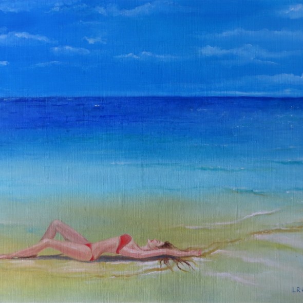 Mujer tomando el sol en una playa 🎨